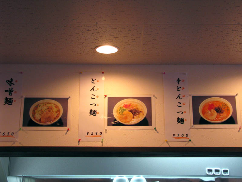 似たようなコンセプトの『魚雷』では、お昼時の早い時間帯にもかかわらず普通系のラーメンは軒並み「売り切れ」で、やむなく『まぜ麺』を食べたのですが、さすがに開店当日から品切れはないようで(^^;、『とんこつ麺』を購入。『替玉』の押しボタンもあったので購入しました。